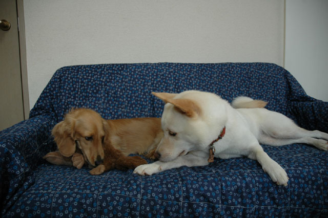 兄ちゃんの方が偉いので、とうふは無理やり奪うことはできませんが、あきらめはつかなくて、傍に近寄ります。
