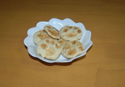 材料は、砂糖なし、ベーキングパウダーなし、無塩バターは少量にして、コネコネ。とうふに生地をかじられながらも、肉球跡をつけることにも成功♪